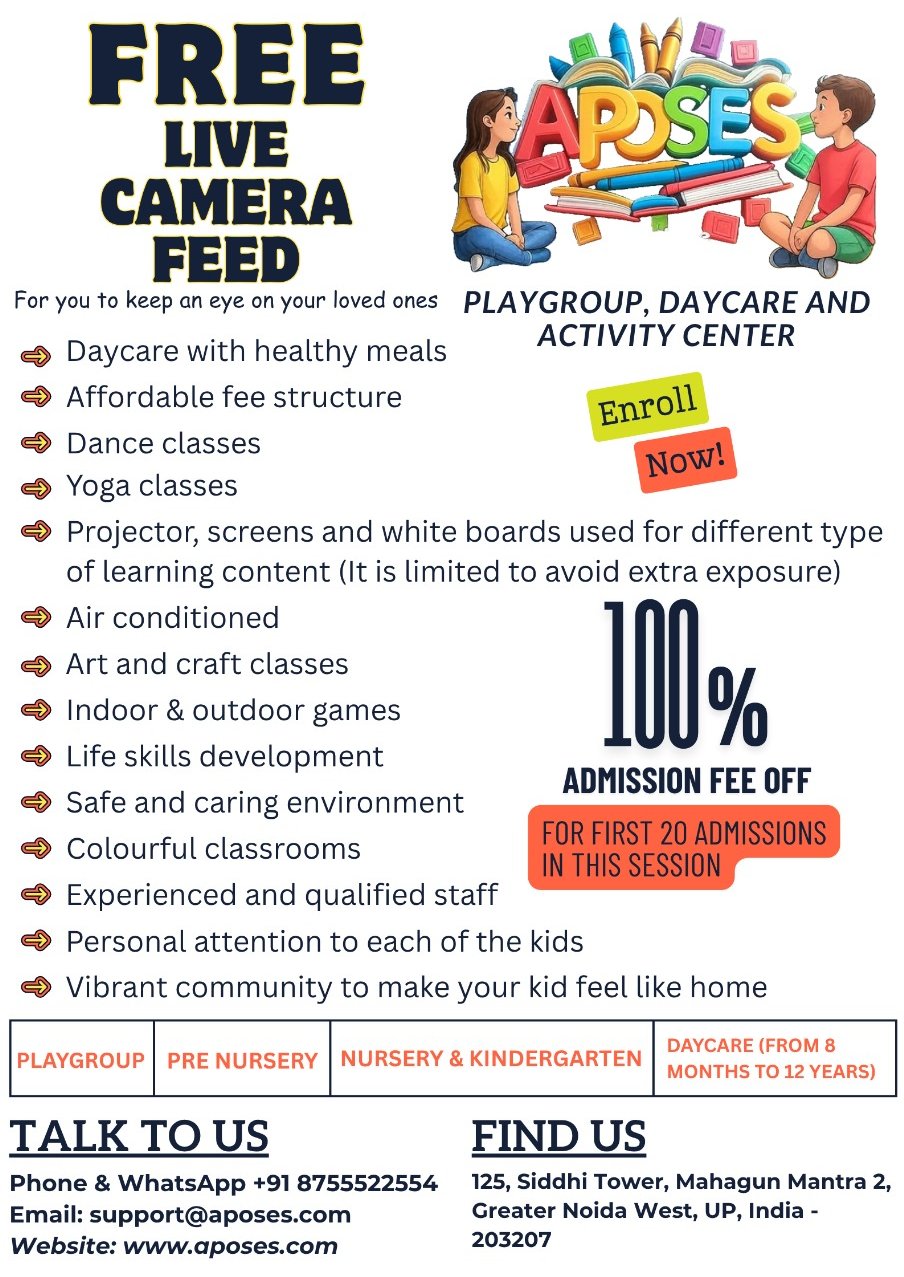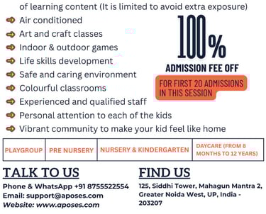 Interactive learning experiences designed to prepare young children for their academic journey ahead. We provide educational services for Playgroup/Preschool, Nursery, LKG, KG and UKG.
